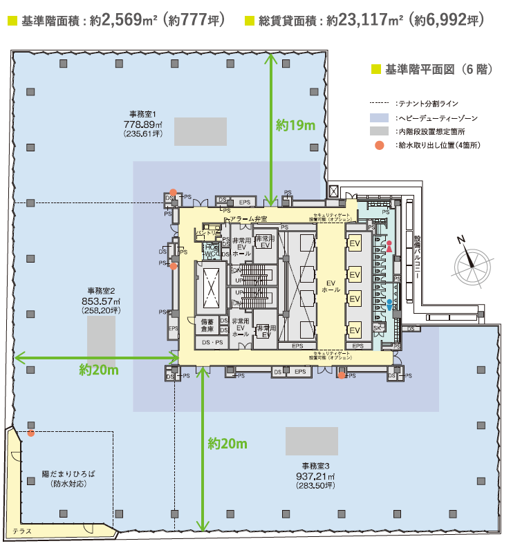 エレベーター基数 高層用:4基、低層用:4基、(オフィス専用)