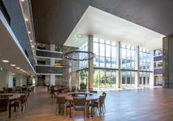 Hulic has realized a lighting conditions preferable for customer work style as well as a significant level of greenhouse gas emissions reduction through energy saving by adjusting the level of LED lighting automatically with daylight and motion sensors.